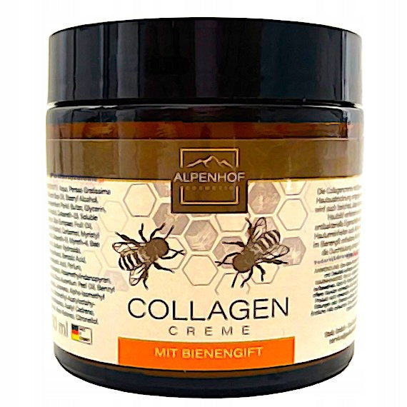 Колагеновият крем Alpenhof с пчелна отрова е интензивна грижа за лице и деколте, създадена да предпазва кожата от дехидратация и да подпомага естествената ѝ регенерация. Благодарение на активната съставка мелитин, съдържаща се в пчелната отрова, кремът стимулира кръвообращението, подобрява тена и спомага за стягане на кожата.